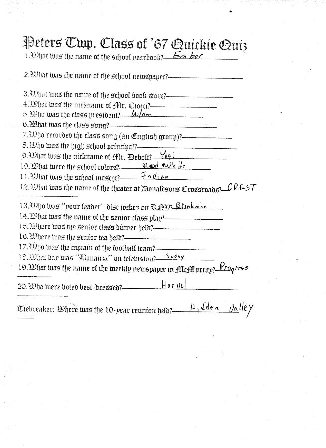 Peters Twp. High School 1965 - 1966 -1967